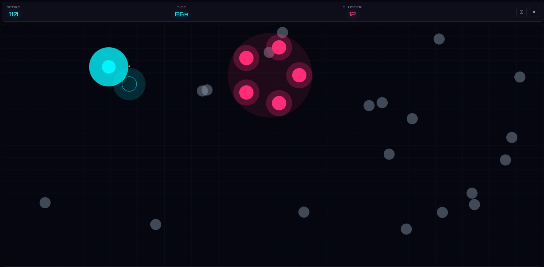 Magnetic dot physics game. Build clusters, crush enemies, dominate the field.